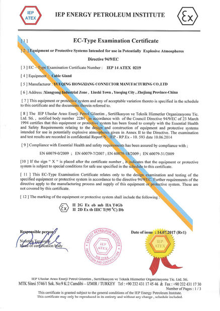 Saat ini, kami memiliki CE, ROHS, REACH, TUV, ATEX, IP68, persetujuan untuk barang-barang kami. Sebagai keahlian sempurna, kualitas bagus dan harga yang kompetitif, artikel Hongxiang membuat reputasi tinggi baik di pasar domestik dan internasional.